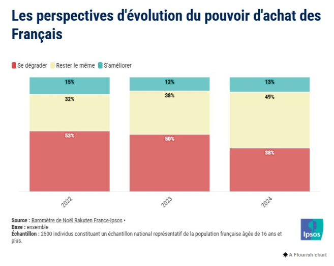 Les fêtes de fin d'année approchent. Selon le Baromètre de Noël 2024 réalisé par Ipsos pour le site d'e-commerce Rakuten, près de la moitié (49%) des Français estiment que leur pouvoir d'achat va rester stable.