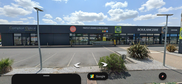 Situé en zone commerciale, avec comme voisin mitoyen sur le même parking des enseignes nationales à forte notoriété : Marie Blachère, Mangeons frais, Pizza Del Arte