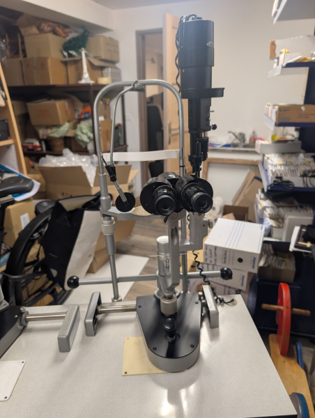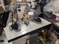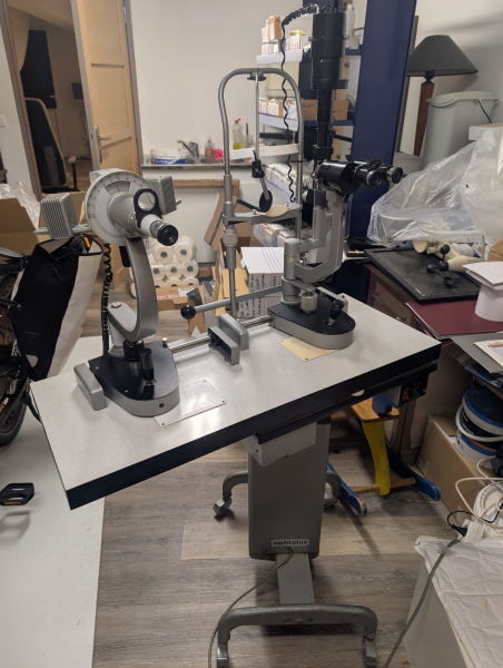 Table à translation élévatrice avec lampe a fente et javal