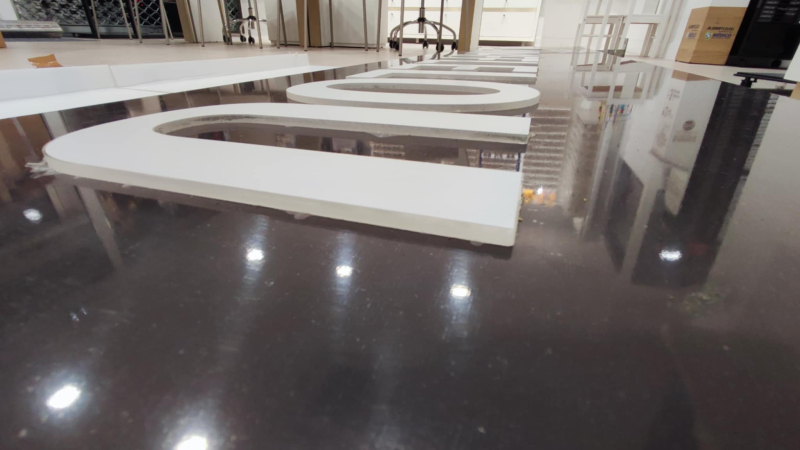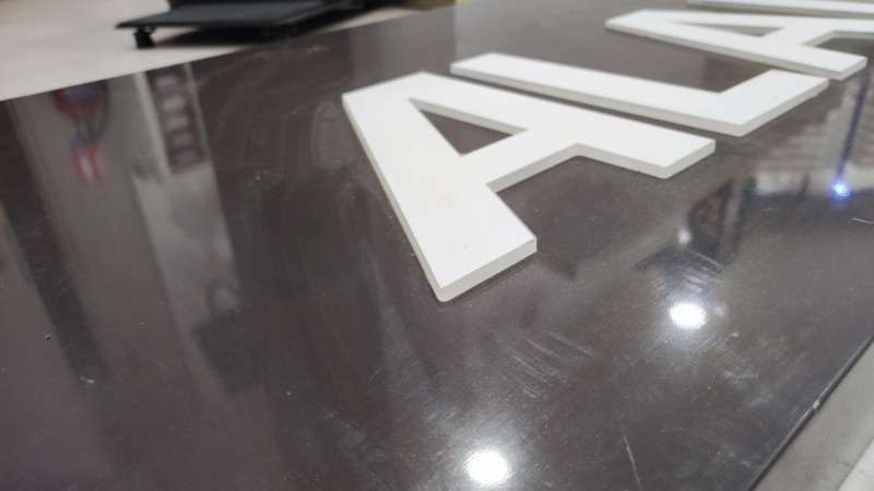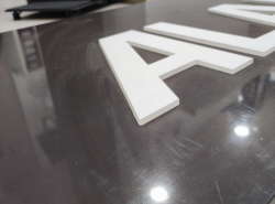 Lettre en relief blanches rétro-éclairées.