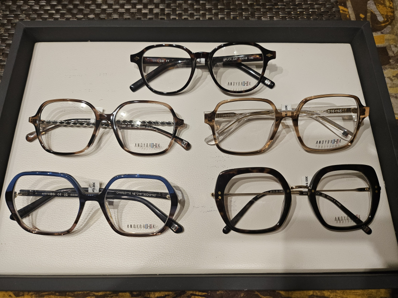 Lot de 15 montures Andy Brook ( 14 étuis) 9 optiques + 6 solaires vendu 225 €, soit 15 € pièce.