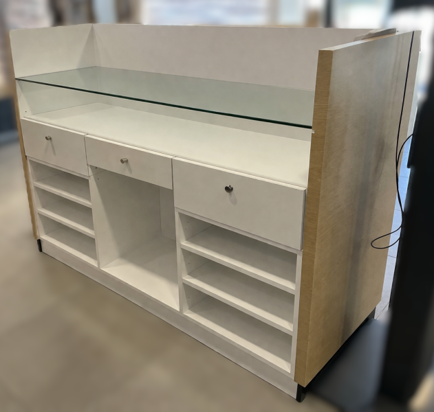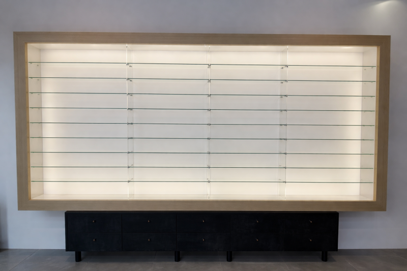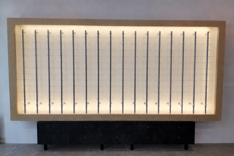 Mobilier fonctionnel, conçu pour une présentation professionnelle des lunettes.
