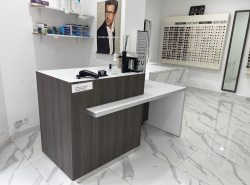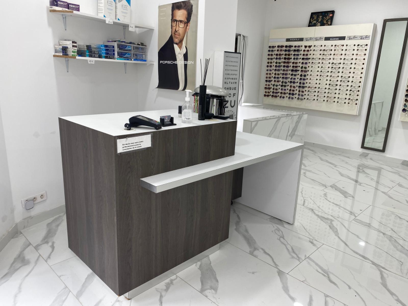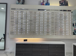 je vends mon agencement complet de magasin avec une borne d'accueil, 3 tables de vente, et 15 panneaux a lunette retro éclairé, 3 grand meuble sous les panneaux pour ranger les lunettes a + miroir